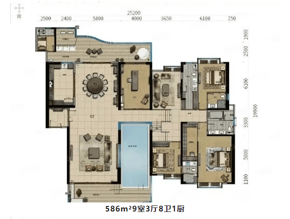 项目户型以 “大尺度、高舒适” 为核心,覆盖大平层与半山院子两大品类,满足不同高端家庭的居住需求。大平层产品包括建面约 328㎡宽景平层大宅、414㎡天境泳池大宅、500㎡复式空中御墅、586㎡空中泳池复式(即将加推),户型设计亮点十足:约 4 米层高提升空间开阔感,约 6.7 米大开间连接餐客厅与阳台,实现南北对流,全屋通透,即使在夏日也能享受穿堂风;586㎡户型更是做到 9 室 3 厅 8 卫 1 厨的奢阔格局,满足多代同堂或高端社交的需求。