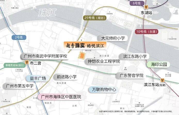 地铁:家门口25号线仲恺路站(规划中),毗邻2号线市二宫站,1站江南西/海珠广场,2站公园前/昌岗;