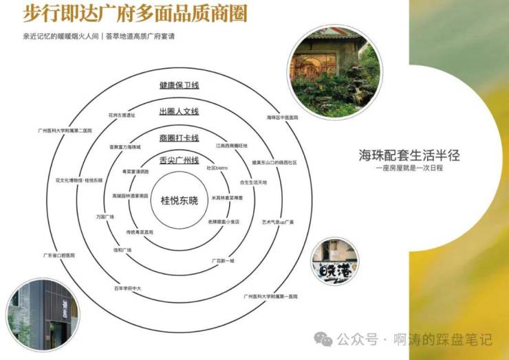 步行即达舌尖广州线、商圈打卡线、出圈人文线、健康保卫线内的多样配套