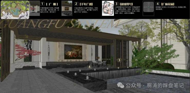 【社区迭代】岭南园林垂直plus版,融入广雕、千年广绣、广府花窗设计,如广雕对景照壁源于余荫山房抽象龟纹石雕,寓长寿之意、镇宅安宁;广府花窗,寓意满堂富贵等,代表广府的美好祝愿