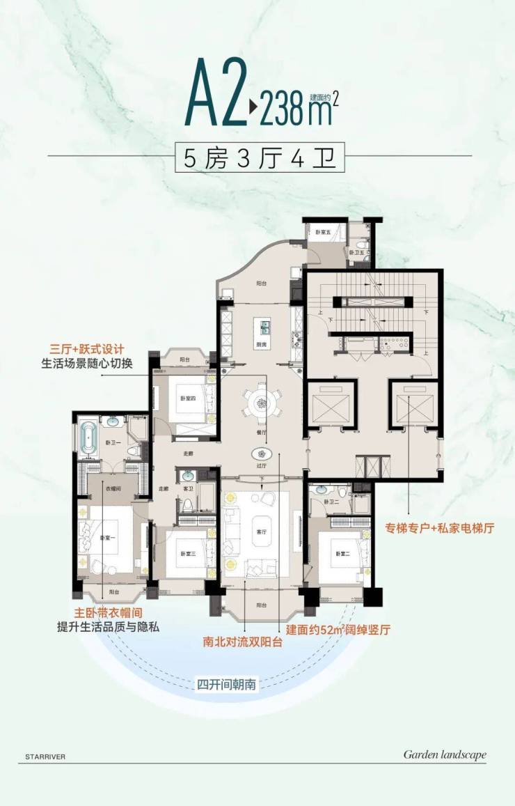 •阔空间:约130-265㎡奢阔三-五房,豪宅尺度,奢享人居。