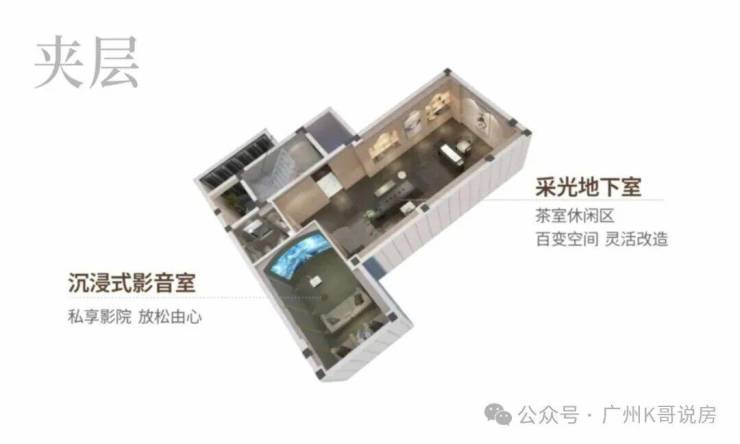 约7.3米挑高地下室,取意广州西关大屋"上观星云,下藏珍玩"的智慧:上层设茶室、书房,天光透过采光井洒落,下层藏酒窖、影音室。