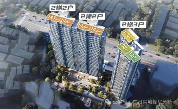 总栋数:3栋,2梯2户/2梯3户