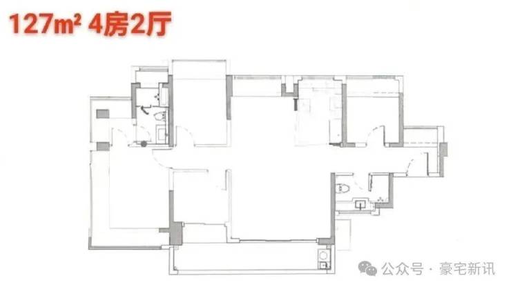 从曝光的户型图来看,全屋都做上了飘窗,布局和市面上优秀的新规产品差不多,亮点在于烟道外置,阳台部分空间可改造,使用率又有所提升。