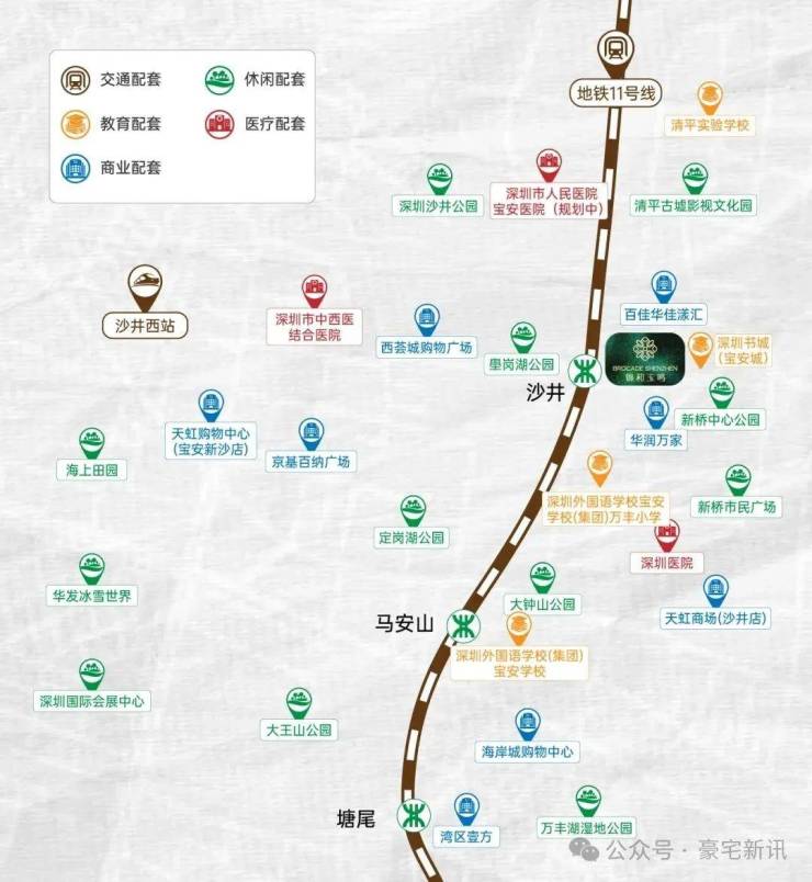 • 地铁直达:约300米(直线距离)11号线沙井站,6站直达宝安机场,8站宝中,9站前海