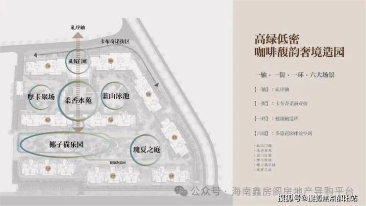 六大场景:礼仪门庭、柔香水苑、蓝山泳池、摩卡聚场、椰子猫乐园、瑰夏之庭