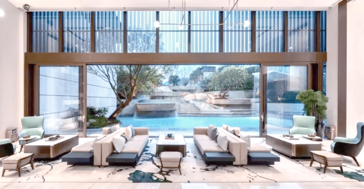 云峰原著,依托其得天独厚的地理优势,巧妙利用山体的自然落差,创新设计出上下叠南北独立入户的类联排叠墅与御山府墅。通过精心策划的错落有致布局,这些别墅产品能够一线尊享难得的绝版私家山景。云峰原著因此成功首创广州专利别墅,成为当代别墅设计的奇观。云峰原著的示范区设计堪称匠心独运。它深刻诠释了原著系的精神内涵,每一处细节都如同精心雕琢的风景。尊贵的铜门,以纯手工铸造,彰显出府门的庄严与气派,令人感受到门第的恢弘与尊贵。而龙鳞叠水瀑布与精心设计的十二级台阶连廊空间,则汇聚了贵胄之气,展现出雍容华彩的生活品味。更妙的是,以水为灵感,打造出三级错落的游园空间,仿佛将瑶池仙境的梦幻与现实完美融合。