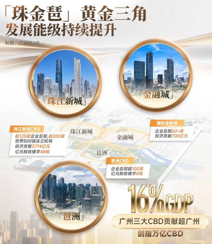 作为广州的经济“心脏”,珠金琶用不到全市1%的土地,贡献了全市约16%的GDP,汇聚着总部经济、数字经济、互联网产业、金融产业等广州的经济命脉,是毋庸置疑的“华南第一CBD”。