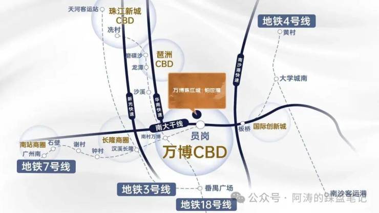 约500米近7号线员岗站,1站万博、5站珠江新城。自驾500米直达南大干线,华快、新光、南沙港快速等多条快速路,交通四通八达,比万博商务区出发到天河海珠的时间还更快,更不用堵车。