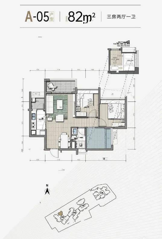85㎡三房两厅一卫与 82㎡户型布局相似,总价约 423.3 万元 / 套,剩余房源主要在高楼层,采光条件更佳。