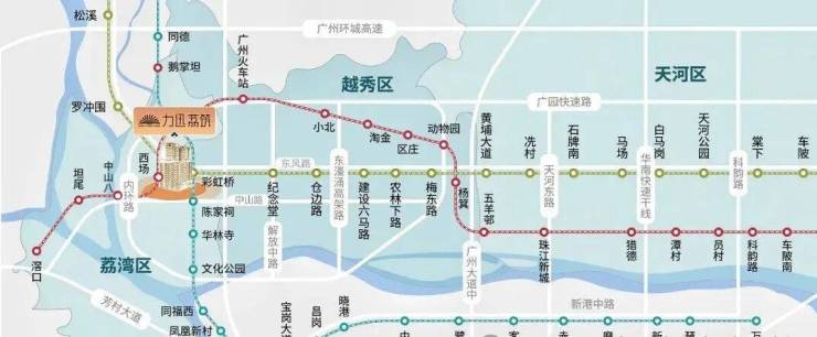 项目下楼即达地铁5号线与在建中的13号线二期西场站,2站即达越秀、9站珠江新城。