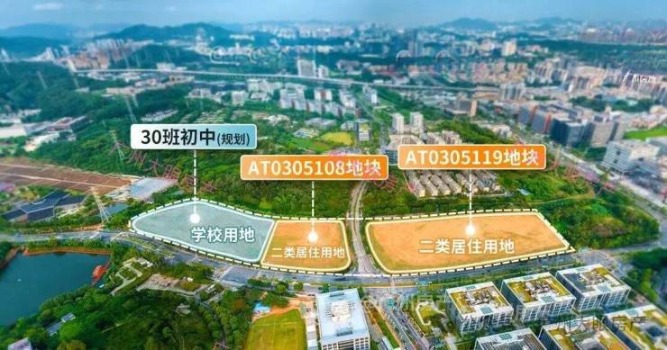 根据地块要求,AT0305119地块将配建一所幼儿园,北侧教育用地建设为公办九年一贯制学校,引入广州中学教育集团办学!