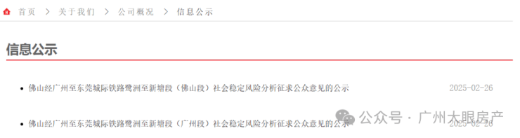 广州地铁官网发布了佛穗莞城际广州段、佛山段的社会稳定风险分析征求公众意见的公示。