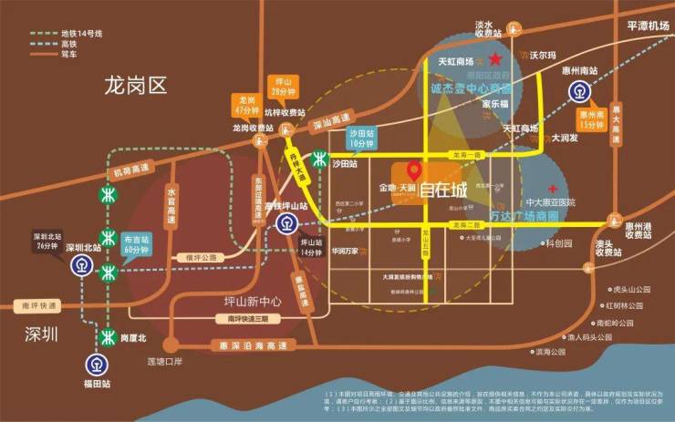 五大干道,便捷通行:南坪快速三期、龙海一路、龙海二路、东华大道、龙山五路等,出行更便捷。距离深圳坪山新区约3公里,约5分钟车程实现两城切换。