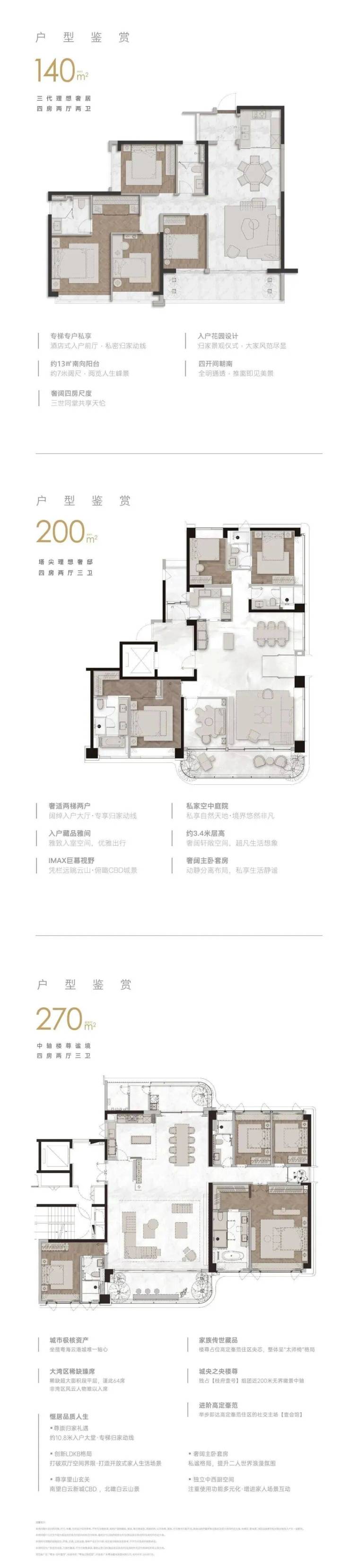住宅部分 桂府壹号呈 围合式布局 ,9栋 (D1~D9) 25层~35层, 建面约140-264m²现代美学大平层。