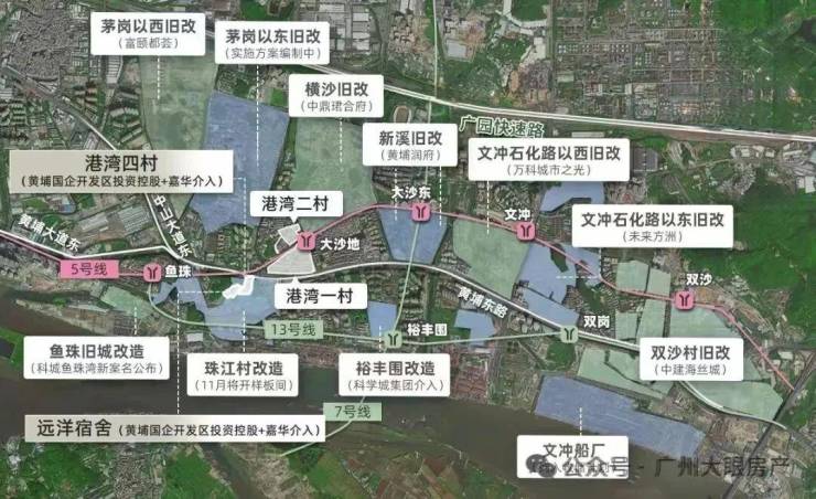 从位置上来看,珠江村位于5号线鱼珠与大沙地之间,是老黄埔旧改中,最靠近天河的项目。