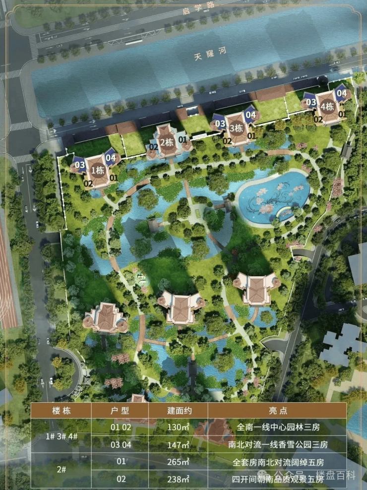 休闲——项目三面环抱约80万㎡的香雪公园,是广州 “羊城八景” 之一,私享水石庭院与古树公园,沐浴健康鲜氧;小区打造护城河、泳湖、中央水景近10000㎡三重水系,形成 “水木亭桥” 的古典意境。