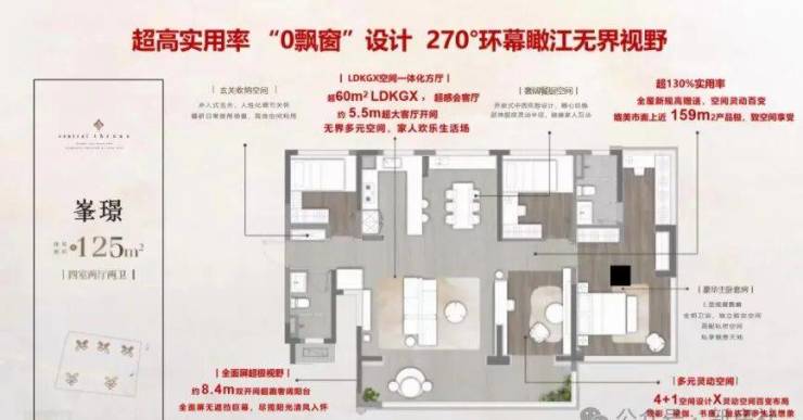 【125m²】15.1米南向面宽+8.4米超大阳台对流+首创外置厨房+改善首选 约8.4米超大阳台,5.5米超大客厅开间,近55㎡LDK设计,自创外置厨房,新潮实用,约7米270°环 幕观景窗,舒适大四房改善必选!