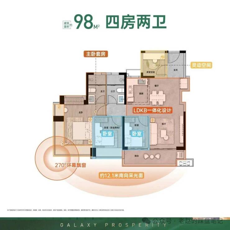 ·零公摊设计:LDKG一体化+双卫配置+主卧270°飘窗