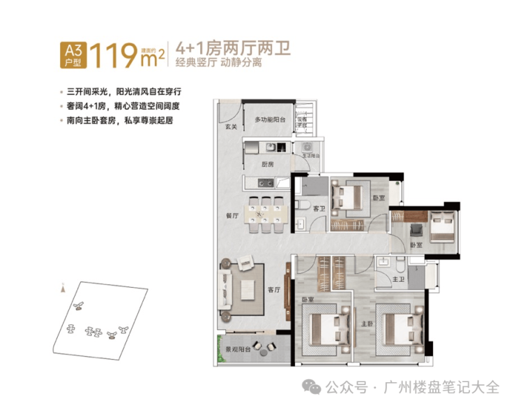 👇119㎡4+1房2厅2卫(竖厅),轻奢四房再送一房,改善换房必选