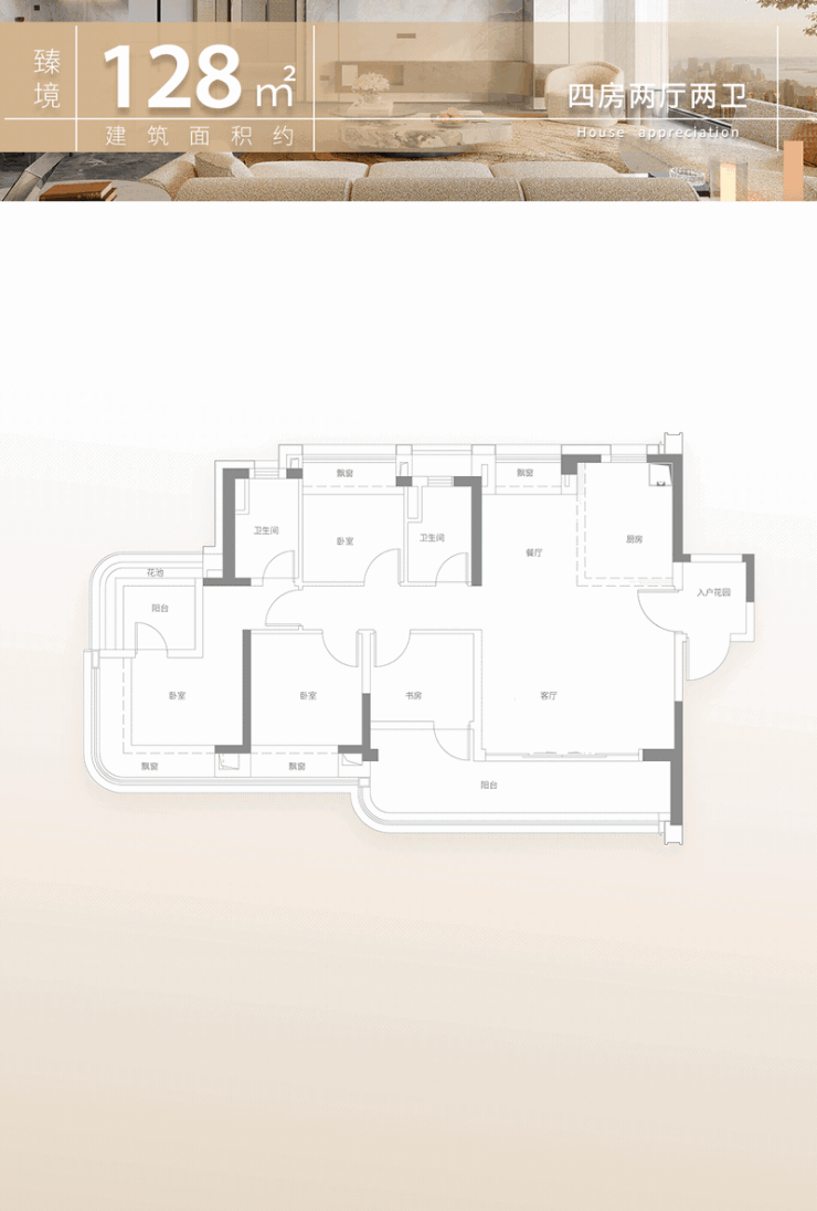 建筑面积约128㎡四房;