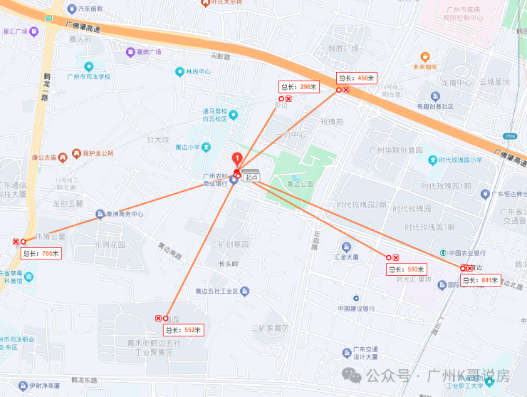 交通方面,地铁2号线的黄边站几百米,3站白云新城,直达江南西,广州南。1站换乘嘉⽲望岗(地铁2/3/14号线交汇)。在建的14号线彭边站,只有两三百米