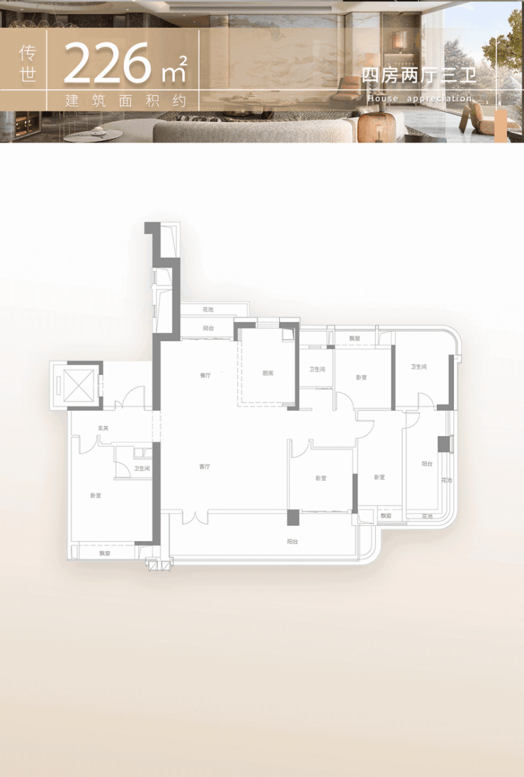 建筑面积约226㎡私梯入户板式四房;