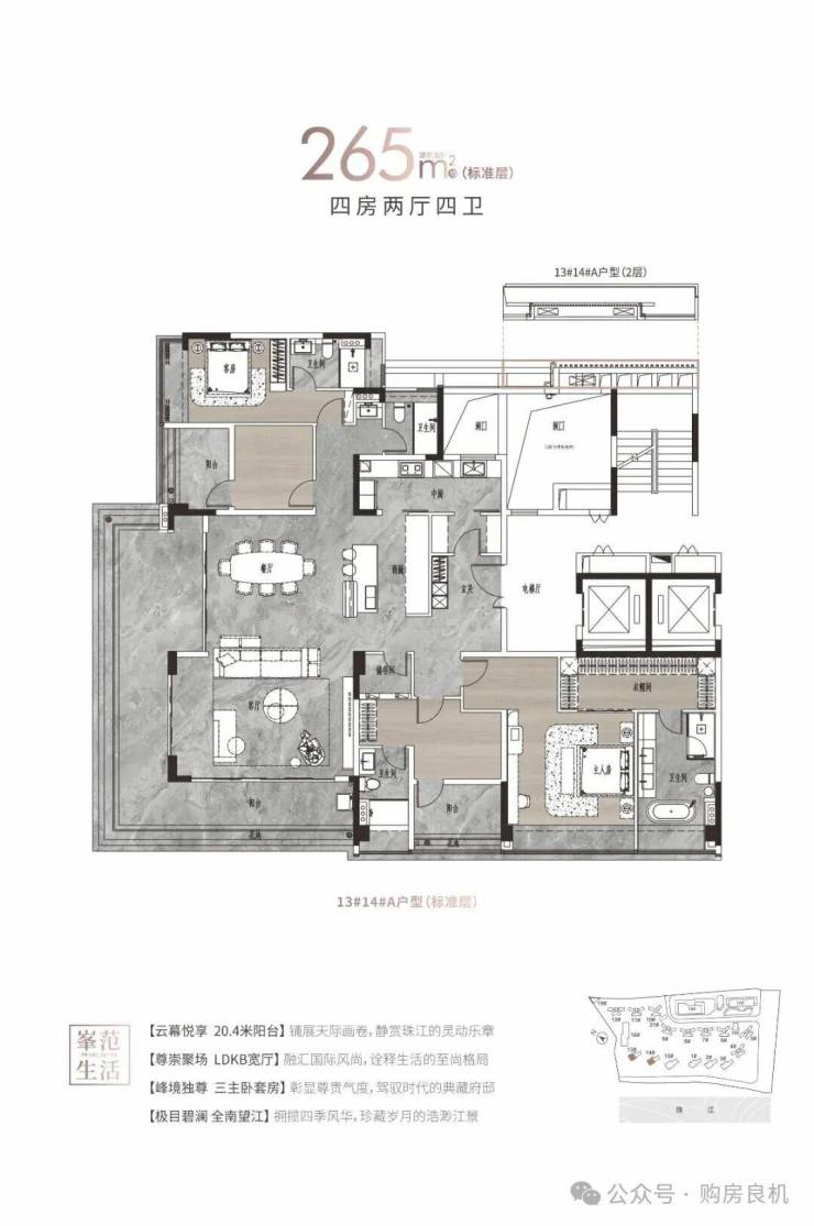 白云首个珠江大平层,125-142㎡南向江景4房,214-319㎡大平层,超高使用率,江景豪宅,市场罕有