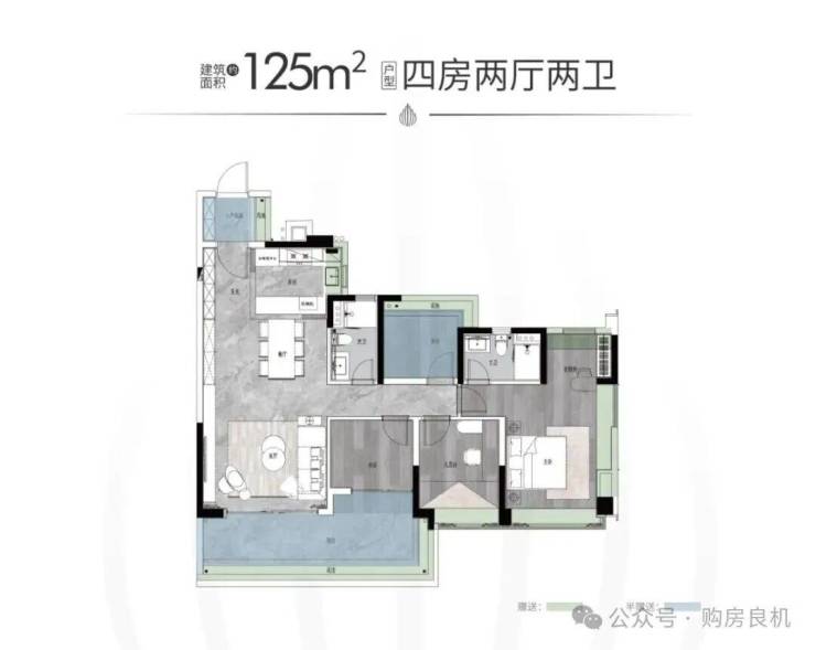【户型面积】建面约125-142㎡四房两厅两卫/214-319㎡大平层