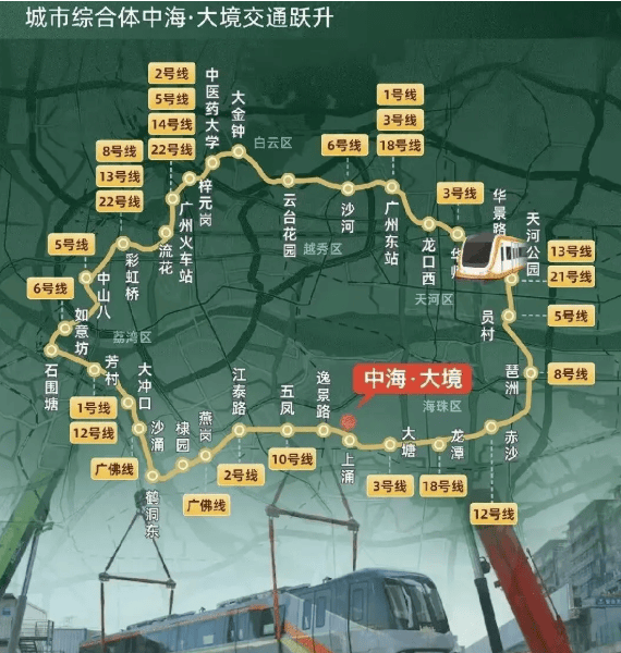 交通是豪宅价值的重要支撑。中海大境坐拥广州首条市区大环线——地铁11号线上涌站上盖,D出口直通社区,无缝串联天河、越秀、荔湾、海珠、白云五大核心区,并可换乘广州几乎所有地铁线路,堪称“换乘之王”。无论是前往珠江新城CBD,还是琶洲会展经济区,皆在20分钟生活圈内。