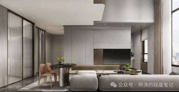 ✅广州首个公寓公区与住宅同品质(一般公寓公区成本为住宅三分之一),大面积采用岩板及奢华金属点缀,嵌入式金属踢脚,提升空间奢华感,打造归家仪式感