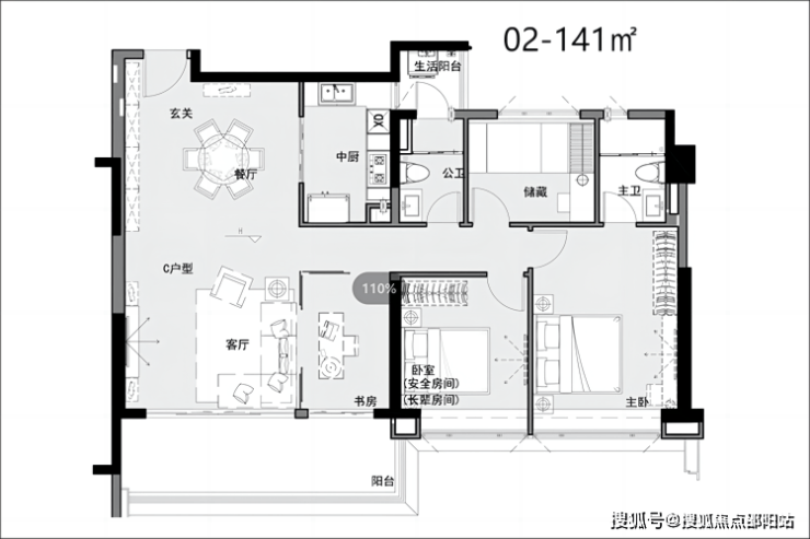 “舒适尺度” 6-7米双联阳台,格局方正实用,动静分区,其中02户型带双阳台,05户型主卧270°飘窗