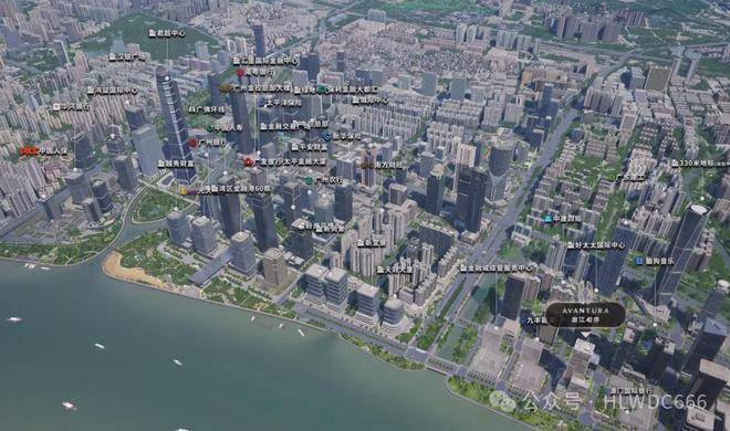 向南对望从琶洲之眼到小蛮腰的城市天际线,向西收藏金融城-珠江新城地标建筑群