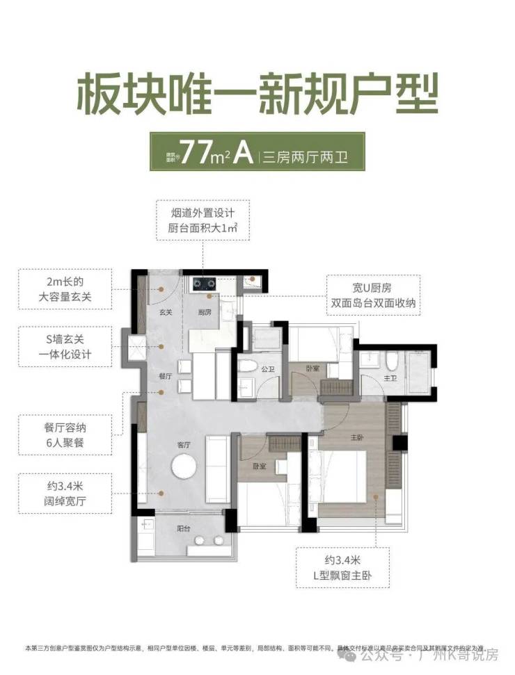 户型方面,主推建面约77㎡、88㎡、103㎡、105㎡、135㎡三到四房,作为南站万博首个新规产品,实用率超120%。