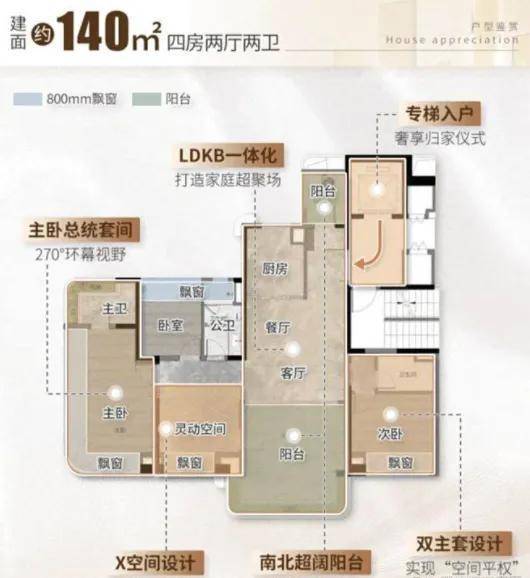 目前广州保利天奕在售的均为四房户型,涵盖建面120㎡、127㎡、140㎡、170㎡和190㎡多种选择,全部采用2梯2户板楼设计,南北通透,采光通风效果出色,参考均价约72000元/㎡,具体售价可咨询售楼处。