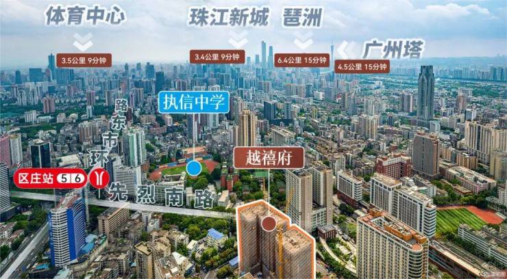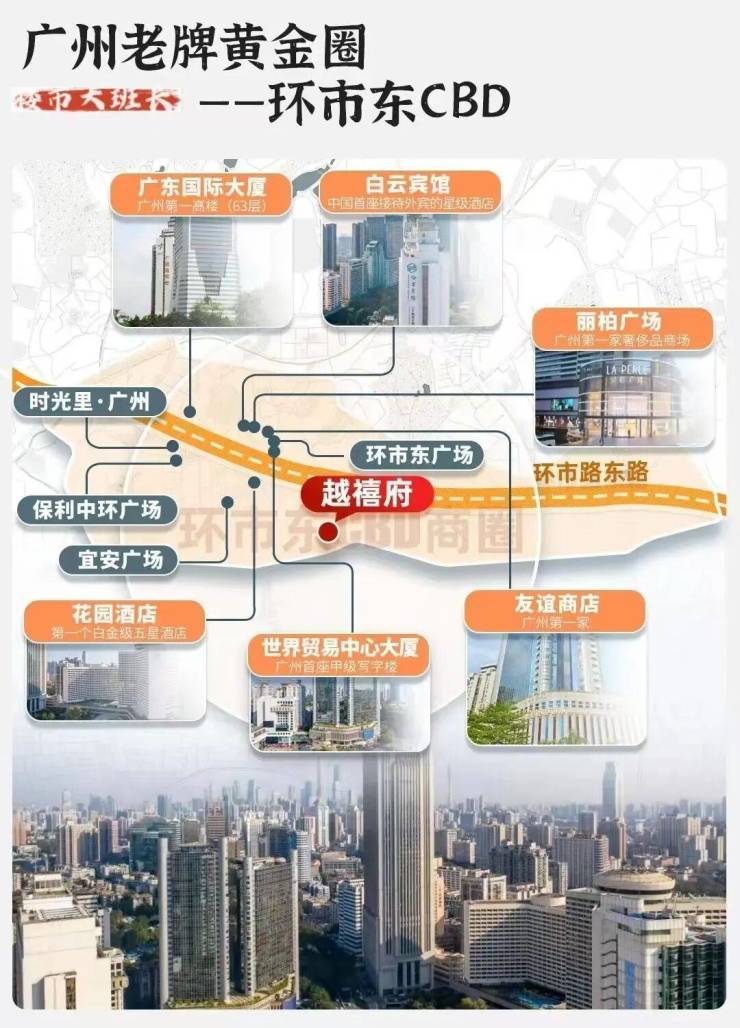 越禧府地处越秀区环市东板块,环市东是广州第一CBD,资源环绕,累积了大批“老钱”;往东是最为耀眼的珠江新城CBD,“新钱”云集