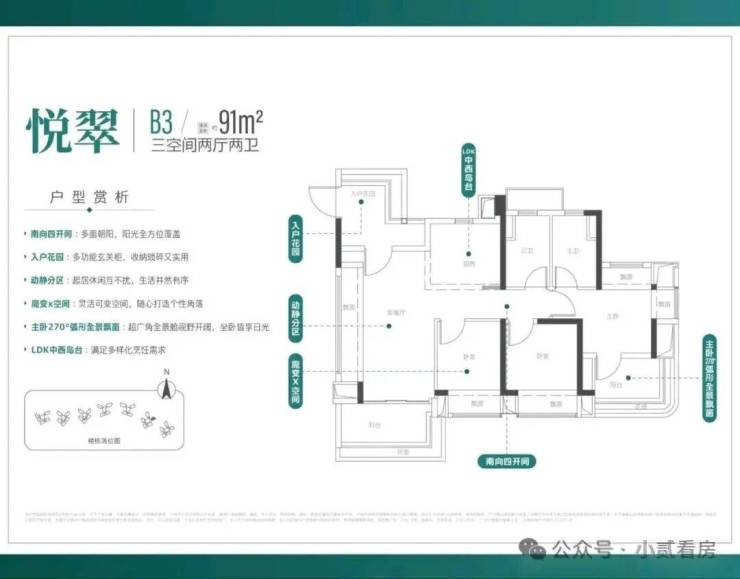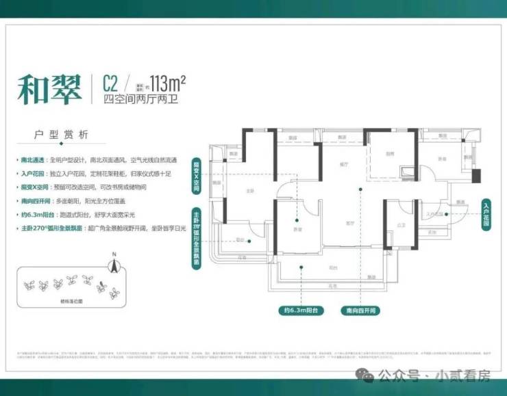 而且每一栋楼只有朝南的房子,但又微微偏转一定角度,既拥有合适的隐私距离,本就户户朝南的空间,又多了一扇拥抱不同风景的窗。