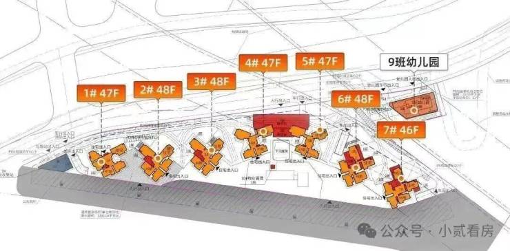总栋数:7栋,均为46-48层总高的超高层,1-3栋为3T5户,4-5栋为3T4户