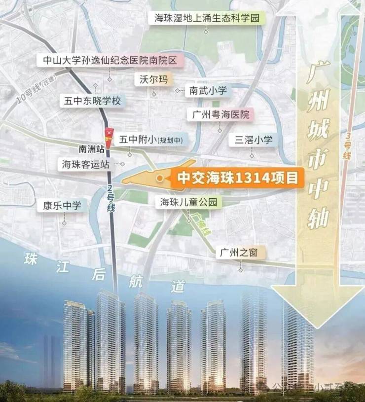2024年8月20日,中交联合体以底价约47亿元,楼面价3.2万元/㎡(扣除3510㎡公建配套)拿下海珠AH101314地块
