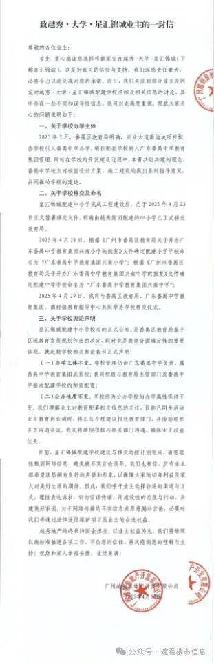 其实,学校方面的问题,开发商现在输出是已经确定由番中派驻核心骨干到项目配建学校进行运营管理,也已经拉通业主。