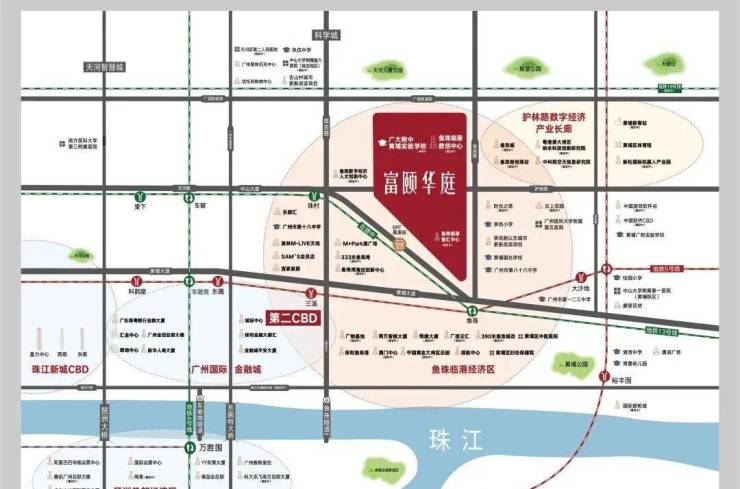 项目地处“珠-金-琶-鱼”珠江黄金8公里内,在广州第二CBD,崛起“下一座珠江新城”。第二CBD占地面积达59平方公里,相当于10个珠江新城,由国际金融城、临港经济区、琶洲形成黄金三角区,是广州发展前景最为广阔的区域,具有无与伦比的地段价值。
