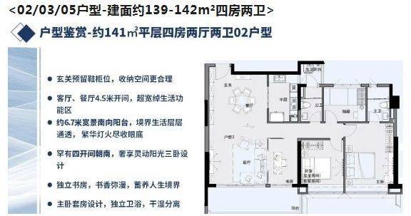 整个分为低区和高区,低区5-18层是两梯五户的设计,户型涵盖121-143㎡三至四房;