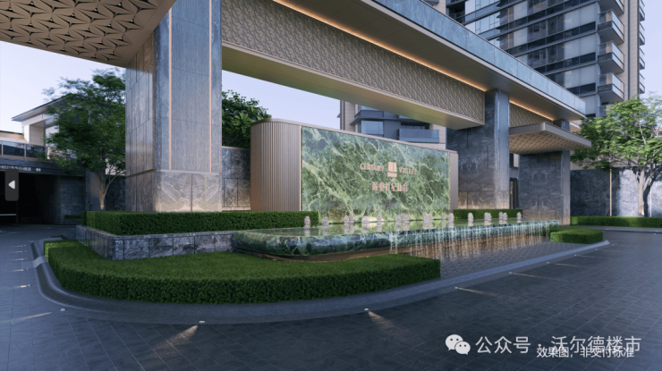 ②门仪:约70m宽奢阔主入口,绿奢石照壁、天然花岗岩门头