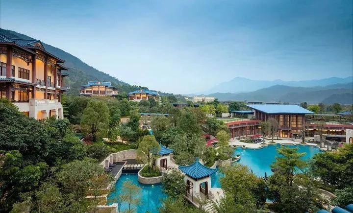 白金五星级温泉酒店:是中国国内首个全套房式酒店,拥有独立套房和别墅(90 间套房,37 栋院落式别墅)。提供全天候的私人管家服务,为了保证优雅宁静的入住环境,酒店区域内不允许车辆行驶,当贵宾到达酒店大堂时,私人管家直接陪同贵宾换乘电瓶车前往其预定的客房