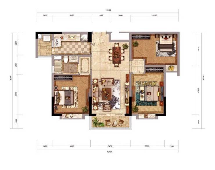 120㎡-三室两厅|配置三个大面积卧室,生活舒适