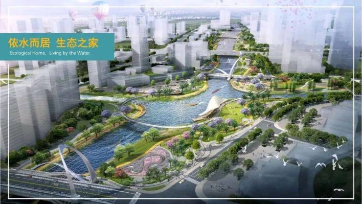 泛舟七境:提取江舟雅韵,打造涵咏自然水韵的岭南优雅格调七境园林;漫步游园,诗画江舟,描绘出快意舟游江水的归家水系。