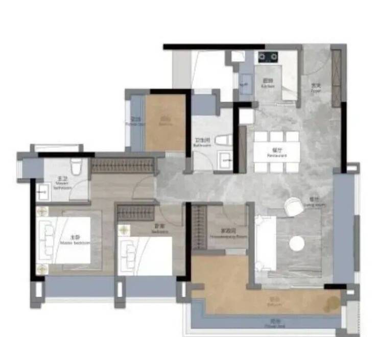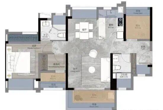 如果全屋的赠送加起来,总共有20多平,也就是说相当于拓宽了一个主卧的面积。