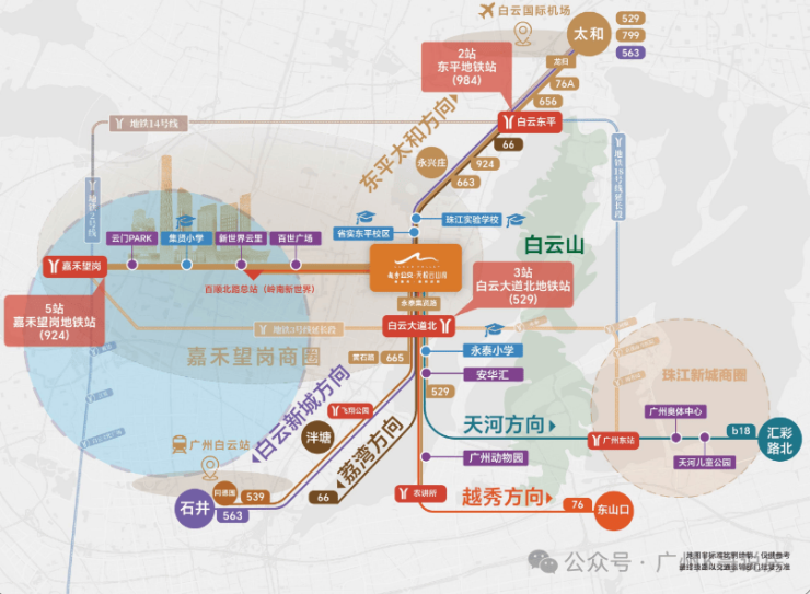 其区位优势,根植于白云新城核心板块作为“广州城市新中轴北延段、白云区行政文化商业中心、空港经济创新示范区”的顶级战略定位。地处 “白云新城核心、地铁上盖(具体地铁线路)、毗邻白云机场、空铁融合枢纽封面地段” ,这里不仅是广州城市北拓的价值高地,更是大湾区规则衔接、产业协同、要素流通的“战略门户”与“新高地”。项目踞守于此,意味着占据了 “大湾区融合发展的战略坐标原点”与“广州未来城市发展的北部引擎” 。地段价值不仅体现在当前顶级的规划能级与快速兑现的城市界面,更在于其承载的空港经济、总部经济与科技创新汇聚的巨大历史机遇。