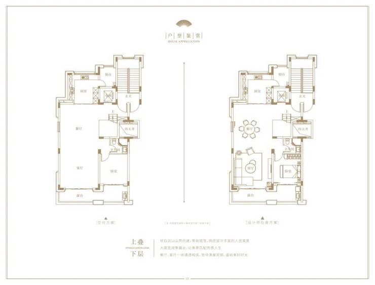 下叠建面相对小一点,约206㎡,空间感不错,配置了两层的地下拓展空间。