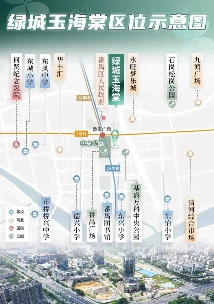 番禺区作为广州的核心区之一,近年来发展迅速,基础设施日趋完善。绿城·玉海棠周边的“番禺广场TOD综合体”不仅是广州重要的交通枢纽,同时也是一个商业、文化、生态的多功能区域。亚运大道和番禺大道两大城市主轴交汇,为本项目提供了出行的便利性,未来地铁的多个线路交汇更让这里成为广州的“交通黄金地带”。